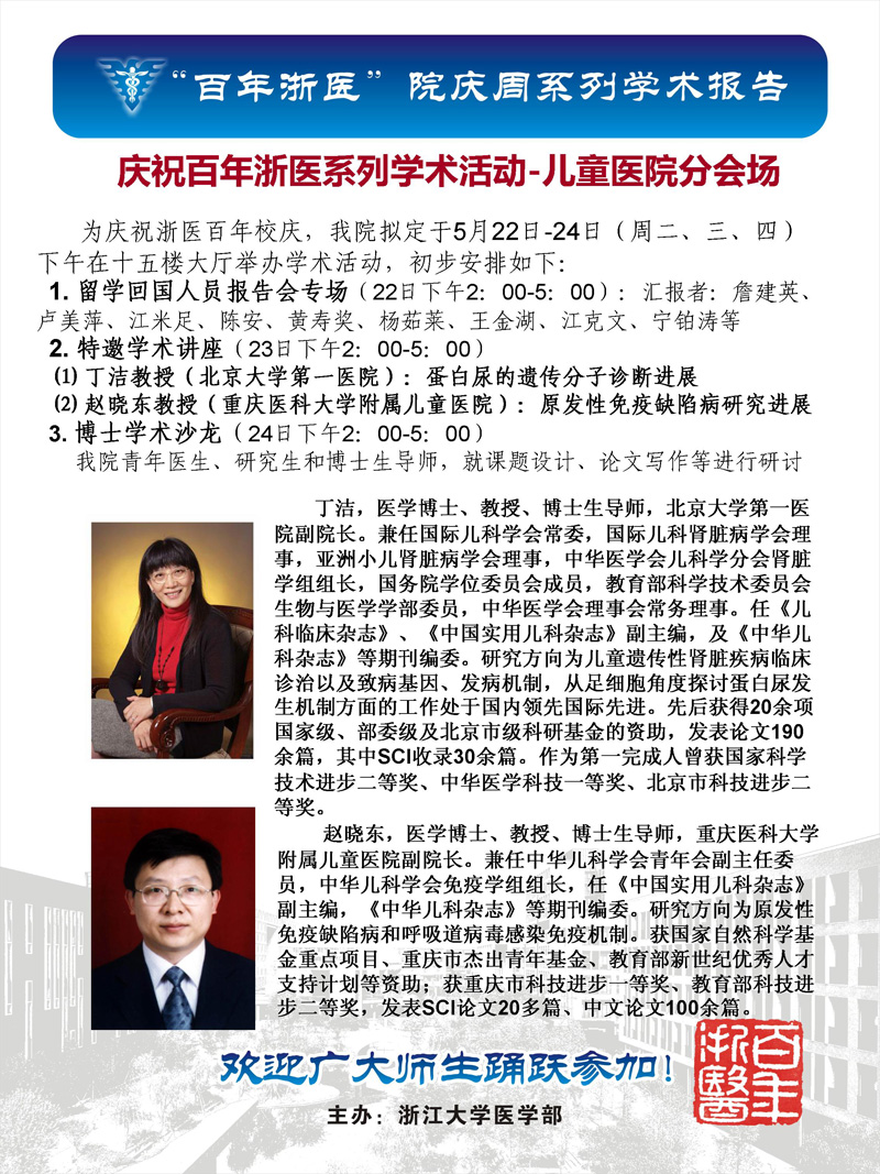 “百年浙医”院庆周系列学术报告——儿童医院专场