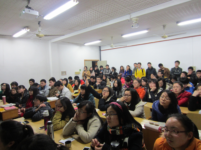 这次交流会不仅仅是两个支部之间的交流,组织方还邀请了10级第一支部所属的1001-1003班的同学们共同学习学长学姐的经验,此外还有部分二系、三系感兴趣的同学参与其中。分享会上,整间教室座无虚席,房间的温度被大家的热情提升了不少,同学们用求知若渴的眼神热切地望着亲爱的学长学姐们。