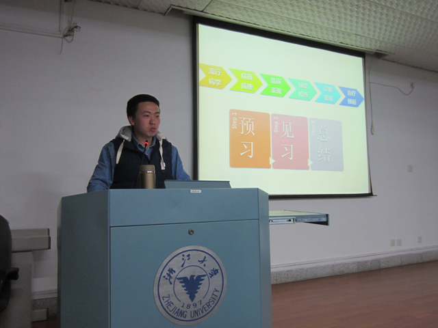 2014年3月4日,由医学院10级本科生第一党支部与08级第二党支部共同主办的华家池学习和生活攻略开交流会在教604隆重召开。会上,08级潘丹美学姐、骆丹艳学姐、叶飞鸣学姐、乐璟云学姐和詹天翔学长分别分享和介绍了华家池学习和生活的小技巧。交流会由08级第二党支部李娜学姐和10级第一支部组织委员严润兰主持。