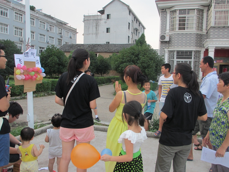 傍晚,马二村的篮球场上,练广场舞的阿姨专门为我们腾出了地方,并慷慨地提供了音响,周围马上聚集了很多好奇的叔叔阿姨和小朋友,看到我们忙碌准备的过程,也好奇地问起了我们的活动内容。