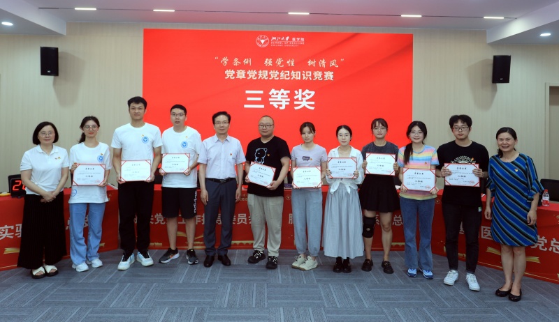 本次知识竞赛由机关党建工作指导委员会、学生党建工作指导委员会、基础医学系党总支、脑科学与脑医学系党总支、公共卫生系党总支、良渚实验室党总支的18名党员组成的6支队伍参赛,共分为必答、抢答等环节。参赛选手们面对问题从容不迫、对答如流,展现出丰富的党章党规党纪知识储备。经过激烈角逐,最终机关党建工作指导委员会代表队荣获一等奖,脑科学与脑医学系党总支、良渚实验室党总支荣获二等奖。