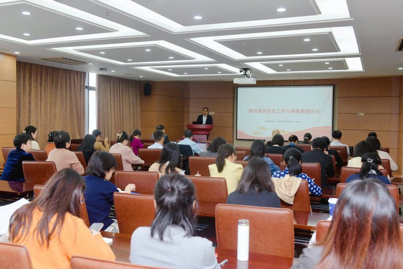 韩志言以《高校意识形态工作与网络舆情应对》为题,围绕意识形态工作的定义与特征、意识形态工作的极端重要性、如何做好意识形态工作等方面,深入剖析了当前高校意识形态工作面临的新挑战、新任务,并以生动的语言、详实的案例,阐释了在面对复杂多变网络环境下高校网络舆情和主流意识形态引导工作的应对策略与方法。